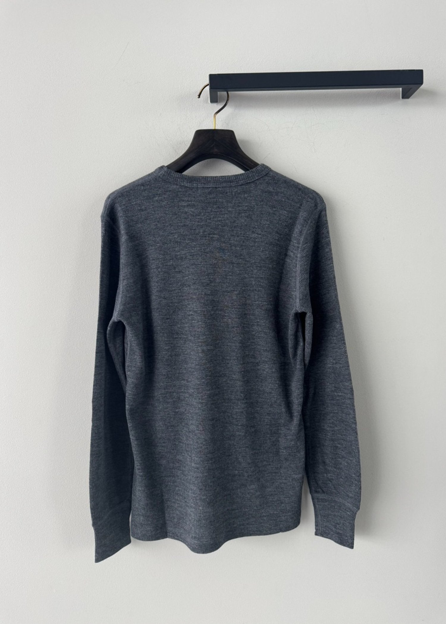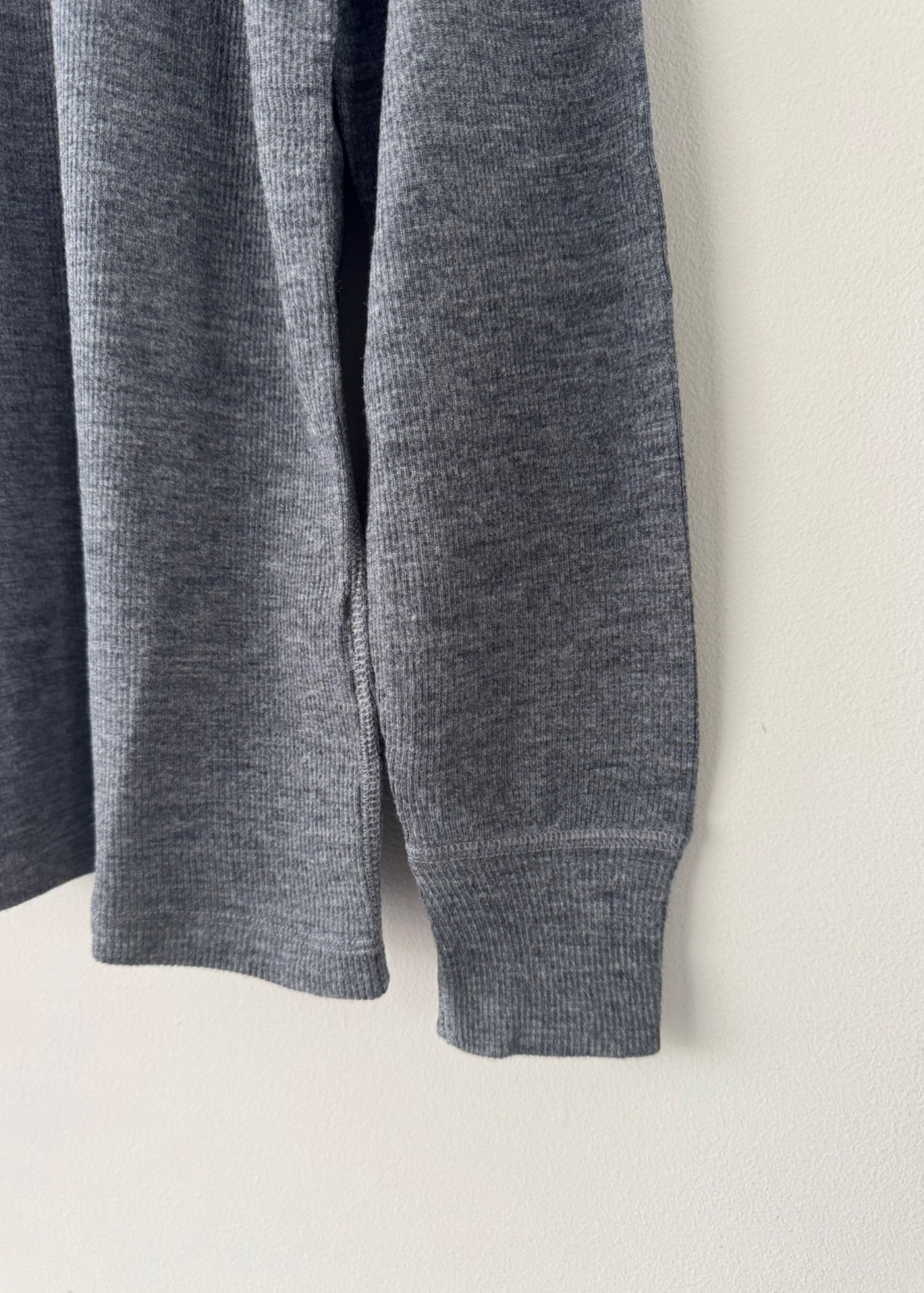 メリノウール素材を使用したカットソーTOP。柔らかい肌触りが特徴です。余裕があるサイズ感でシンプルなロンTベースのデザインは、幅広いコーディネートで活躍する一着です。