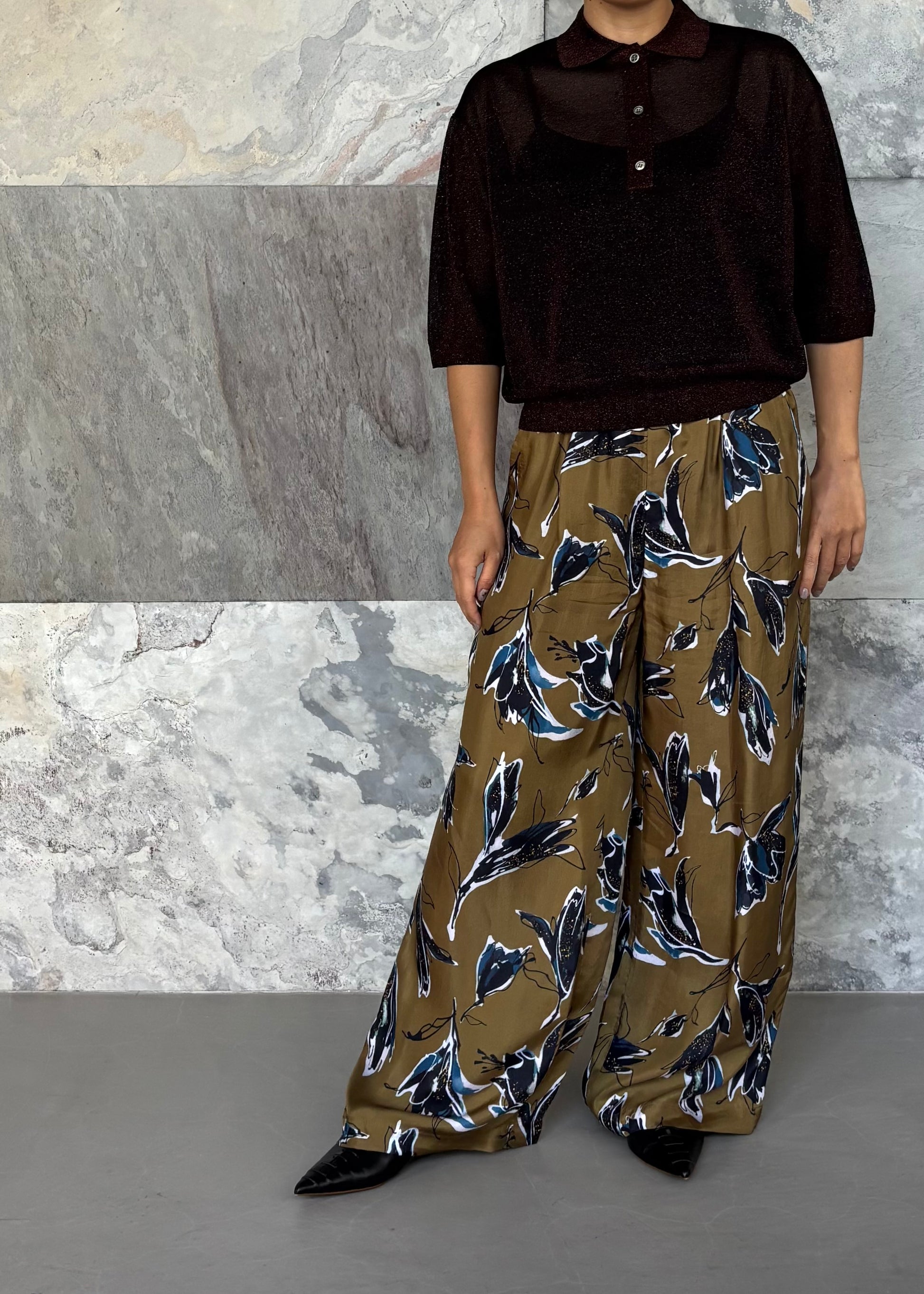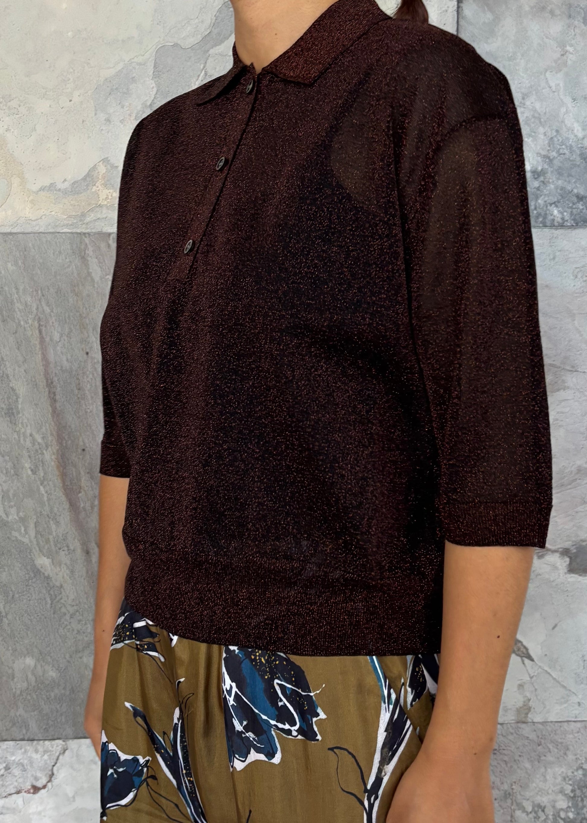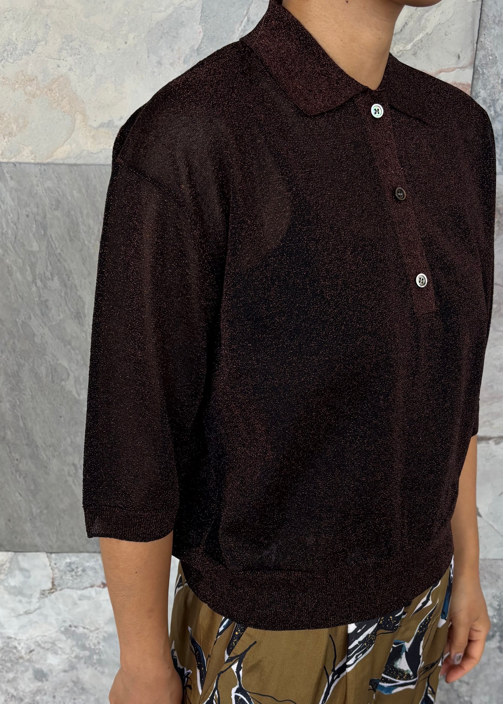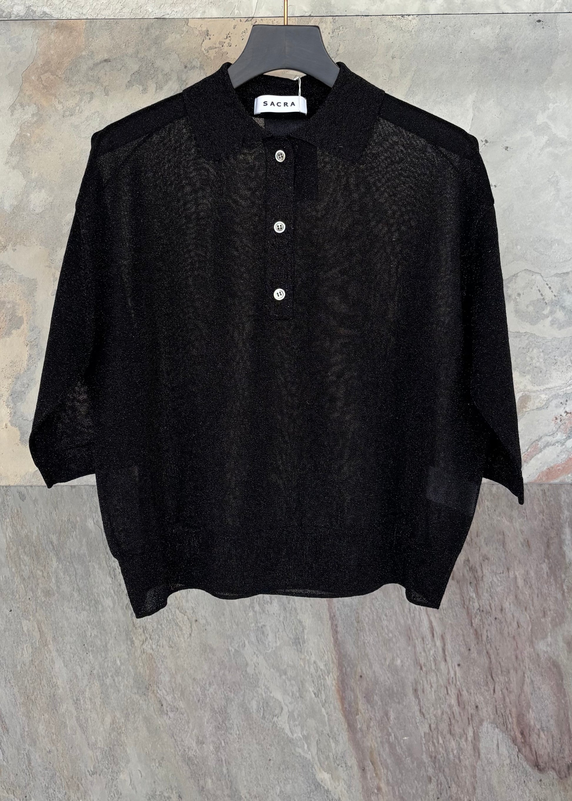 SACRA/EX.FINE GLOSSY YARN POLO TOP