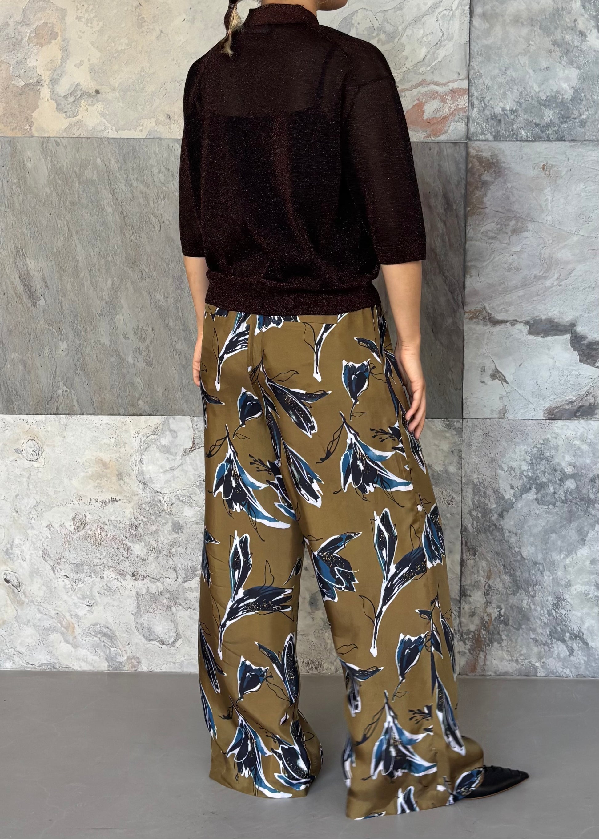 上質なイタリア製ラメ糸を使用し、光沢感とさりげないシアー感が魅力のポロニット。程よいハリ感で肌離れも良く、カットソー感覚で着ていただけます。トラッドな印象のポロニットをアップデートしたシーズンムード高まる一着です。