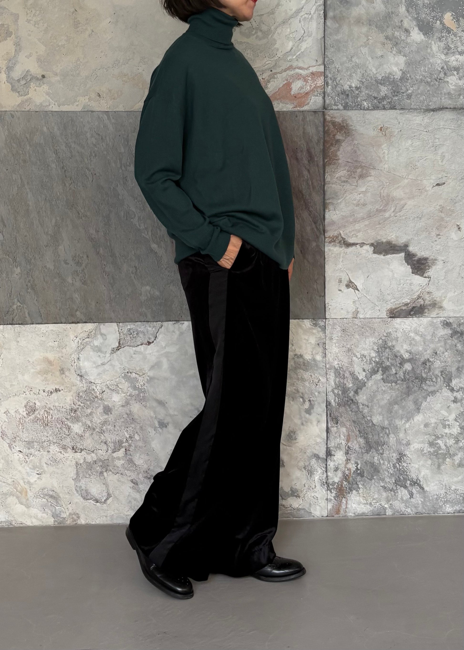 高品質のトリアセテートを使用したベロア素材のストレートパンツ。