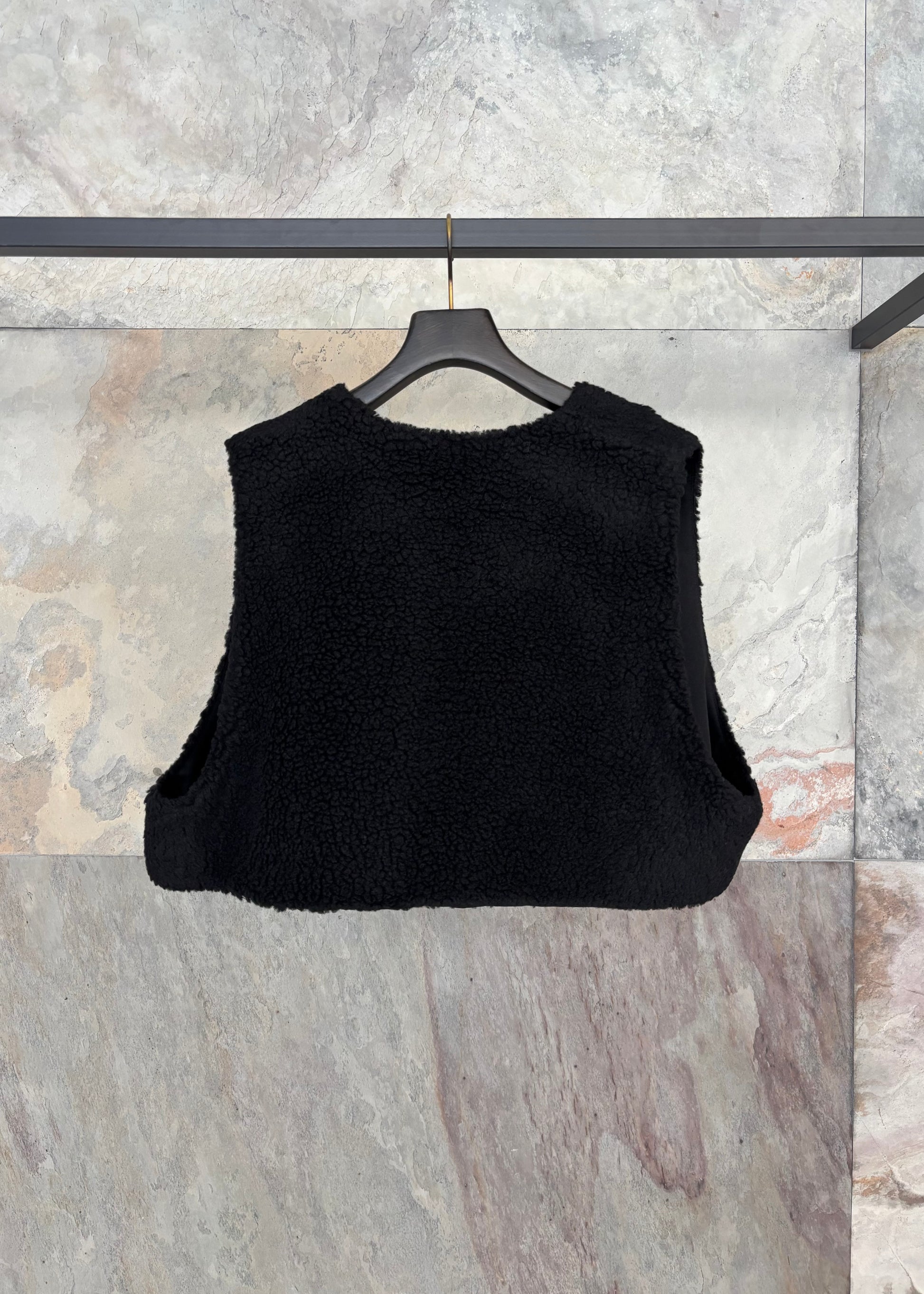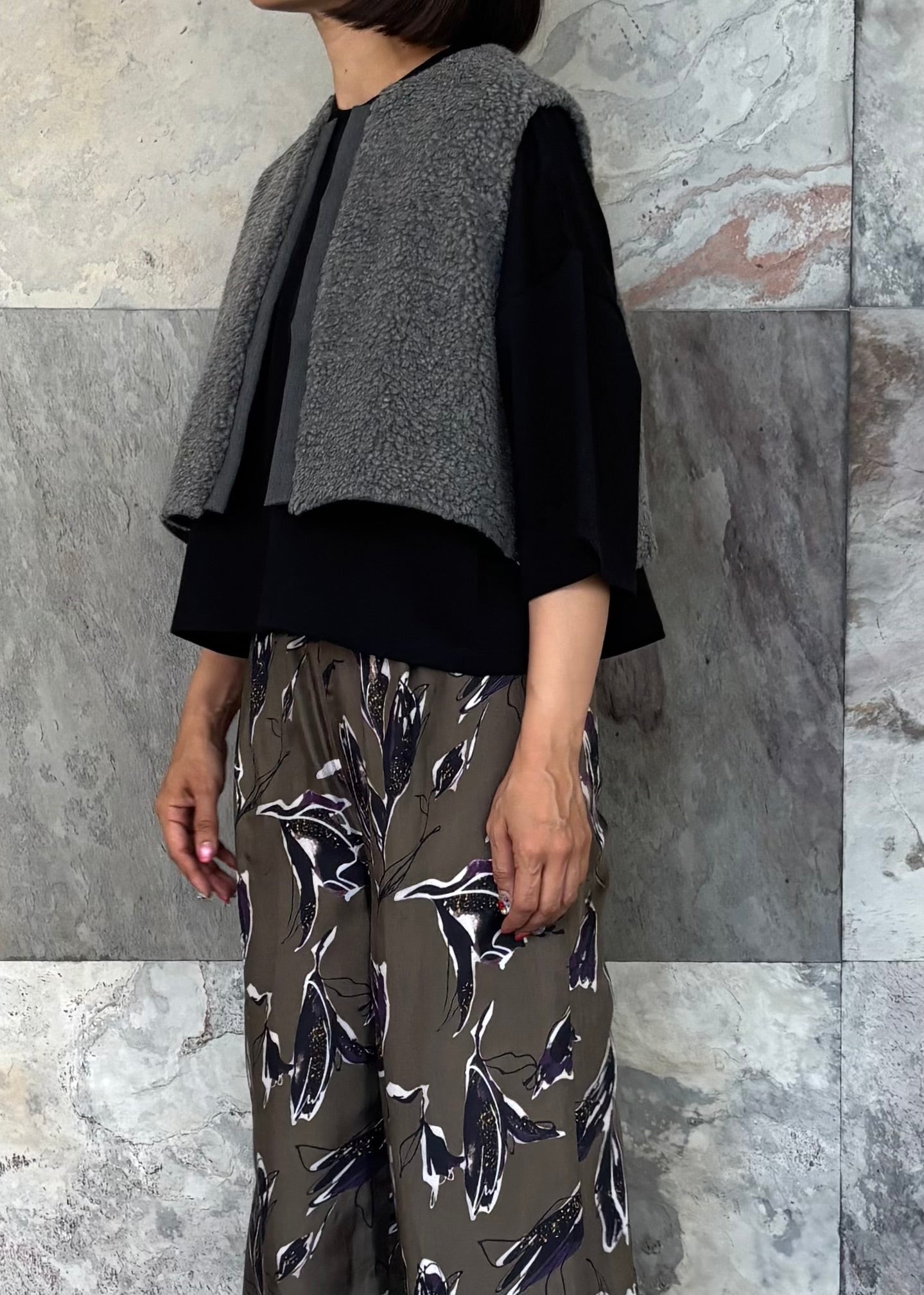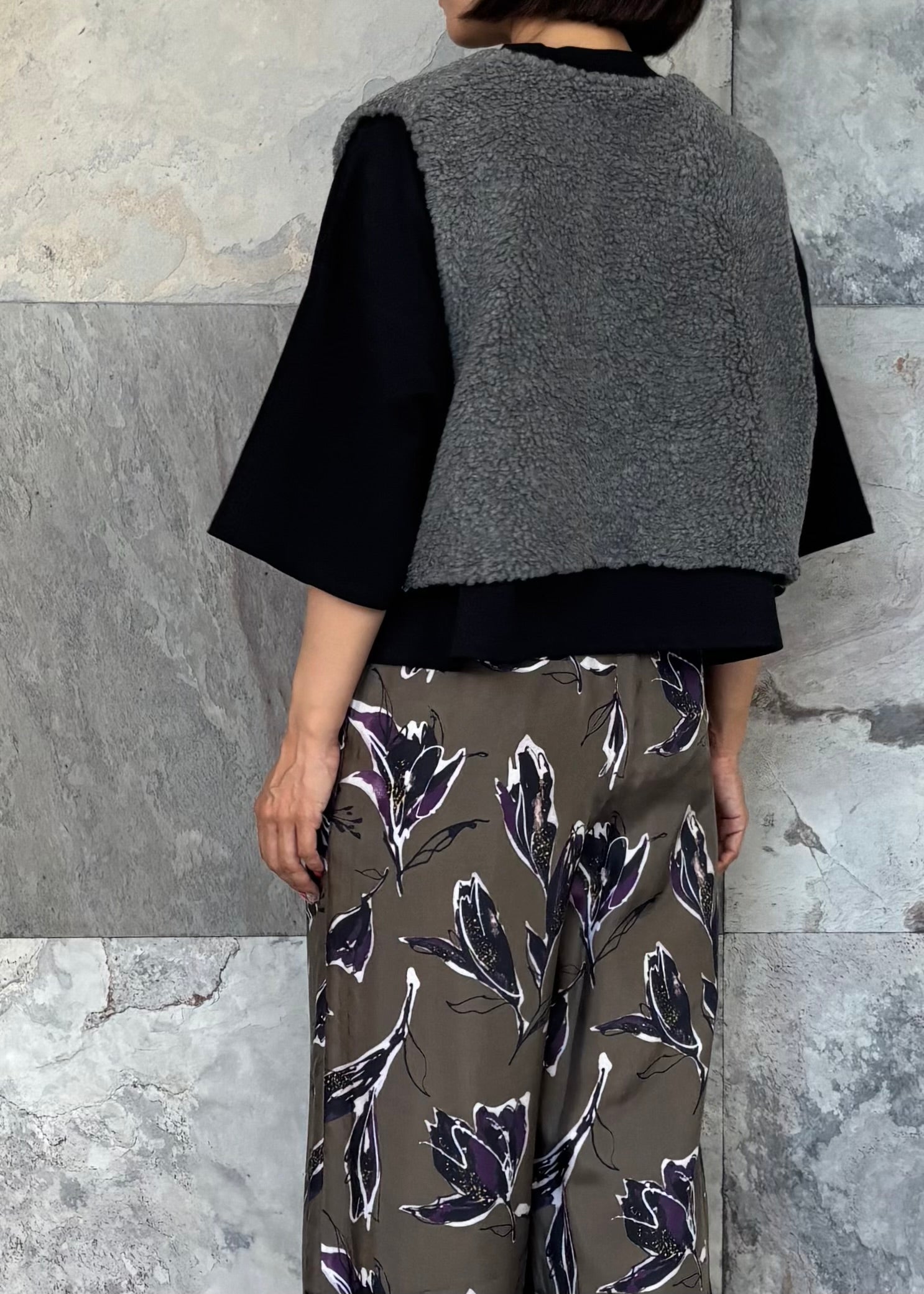 上質なボアの素材感を活かしたミニマルなデザインとクロップド丈の絶妙なバランスが魅力のジレ。シャツやワンピースなど様々なアイテムに羽織るだけで旬なスタイルに。