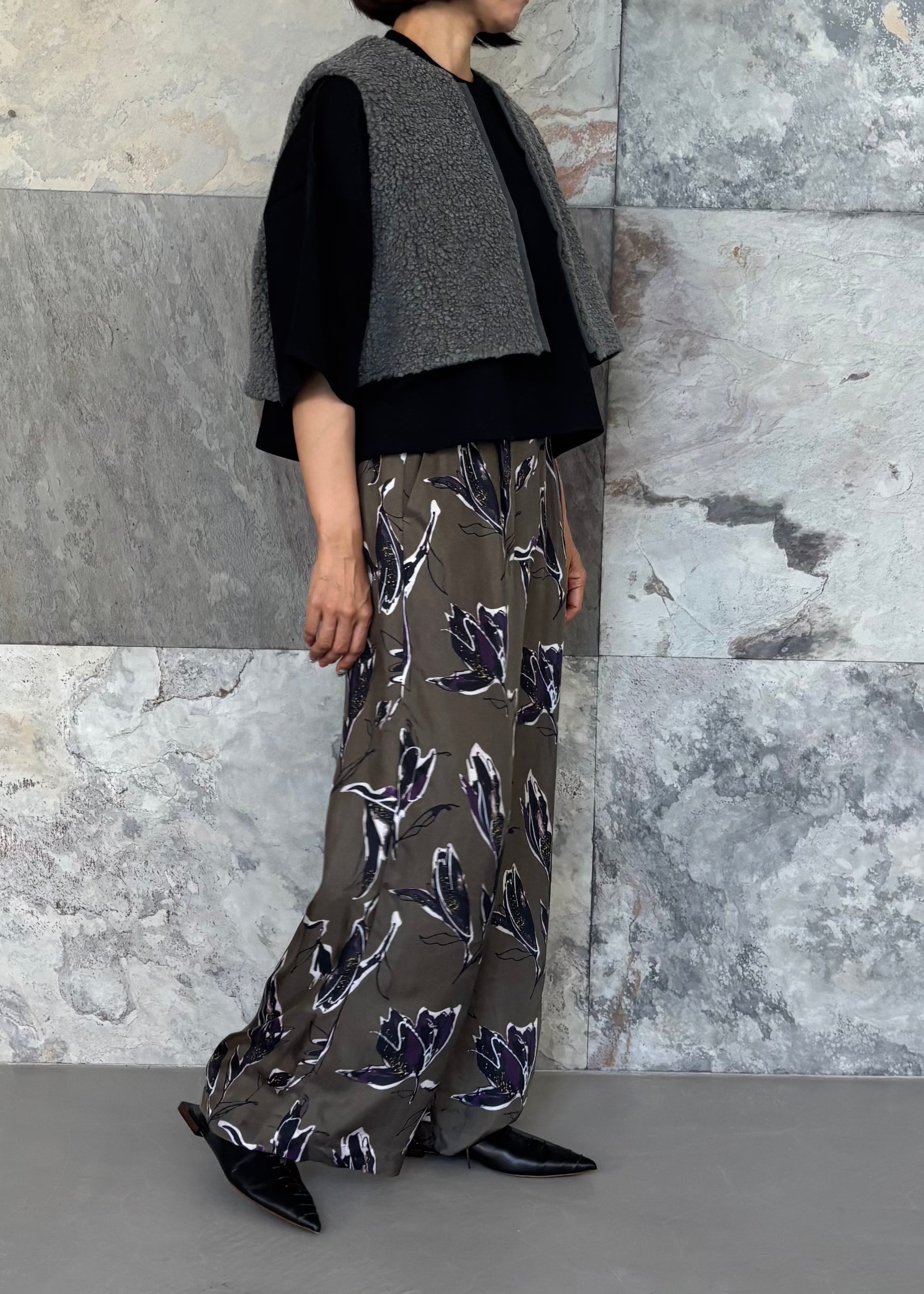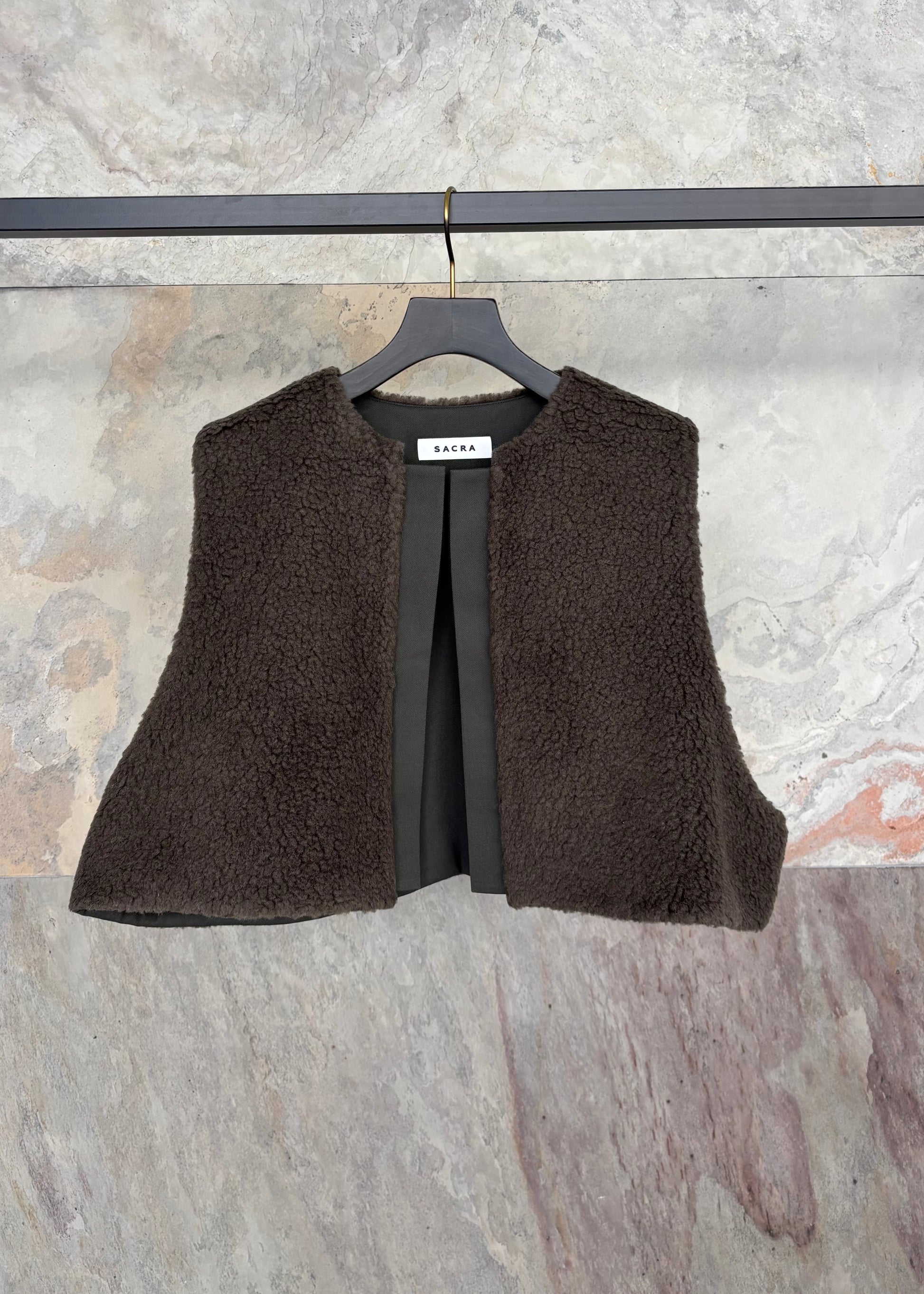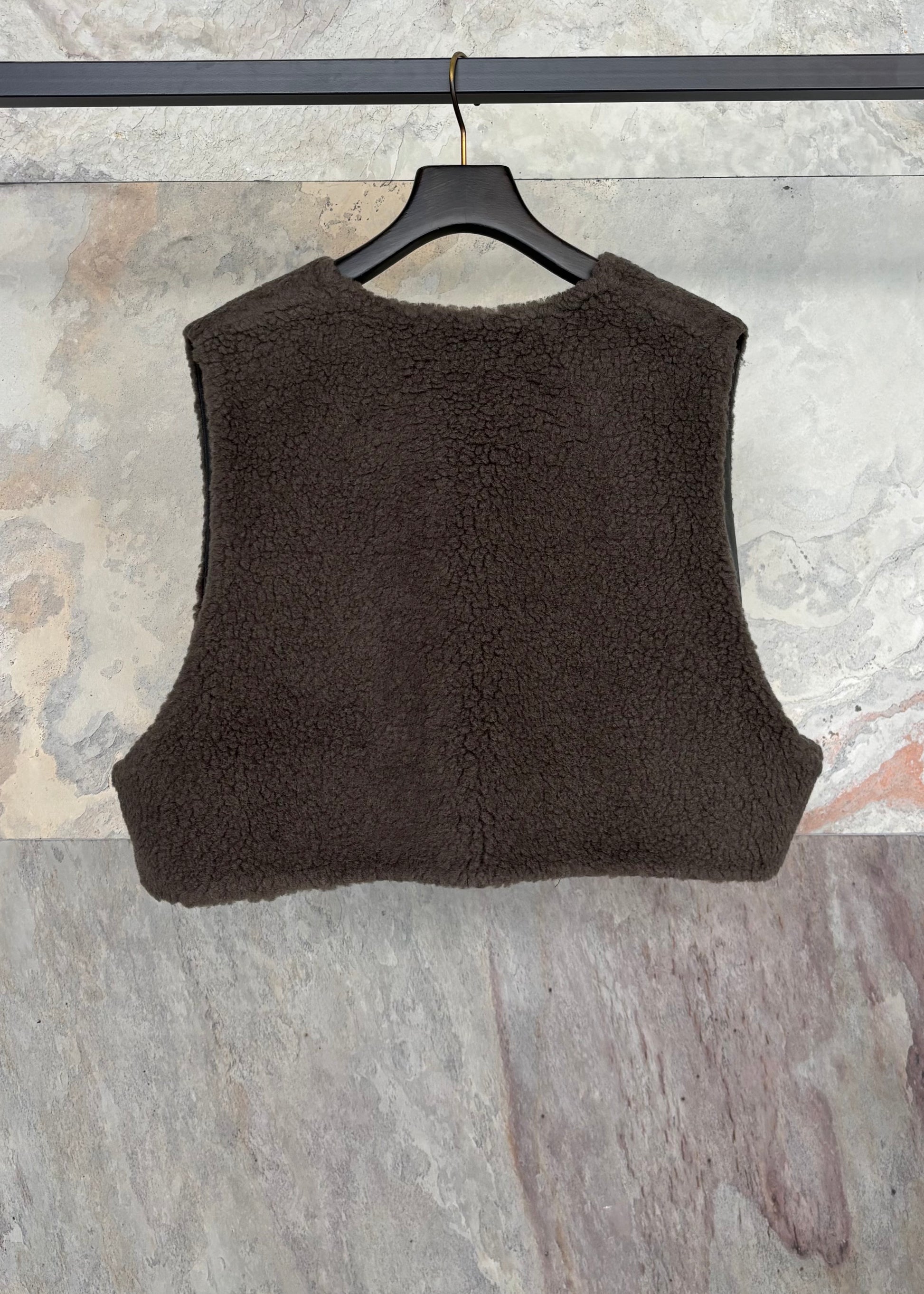 上質なボアの素材感を活かしたミニマルなデザインとクロップド丈の絶妙なバランスが魅力のジレ。シャツやワンピースなど様々なアイテムに羽織るだけで旬なスタイルに。