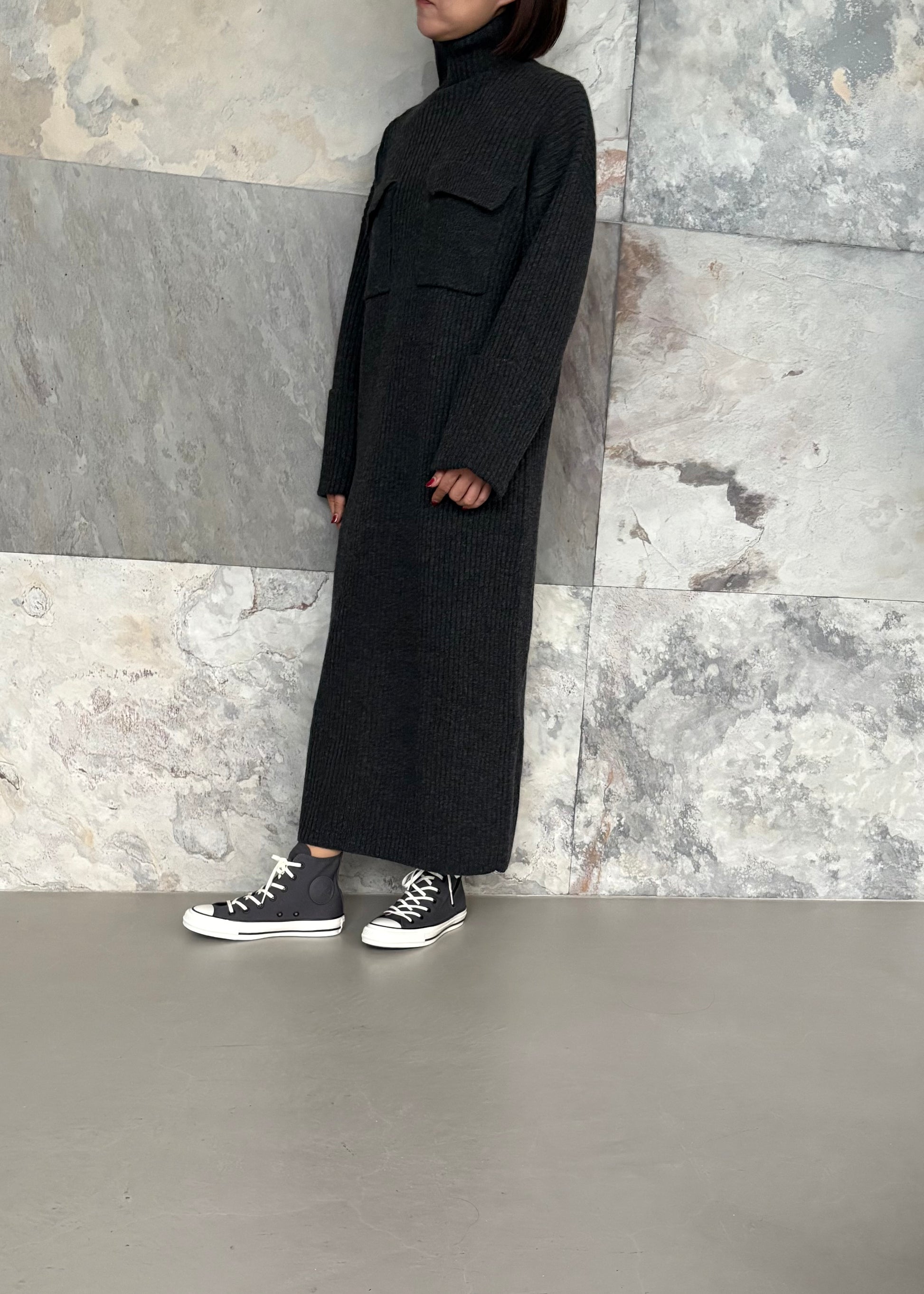 膨らみと柔らかさが特徴のリブニットワンピース。フロントのフラップ付きパッチポケットディティールと長めのワイドカフスのロングスリーブがポイント。一枚でサマになるシーズンムード溢れるワンピースです。