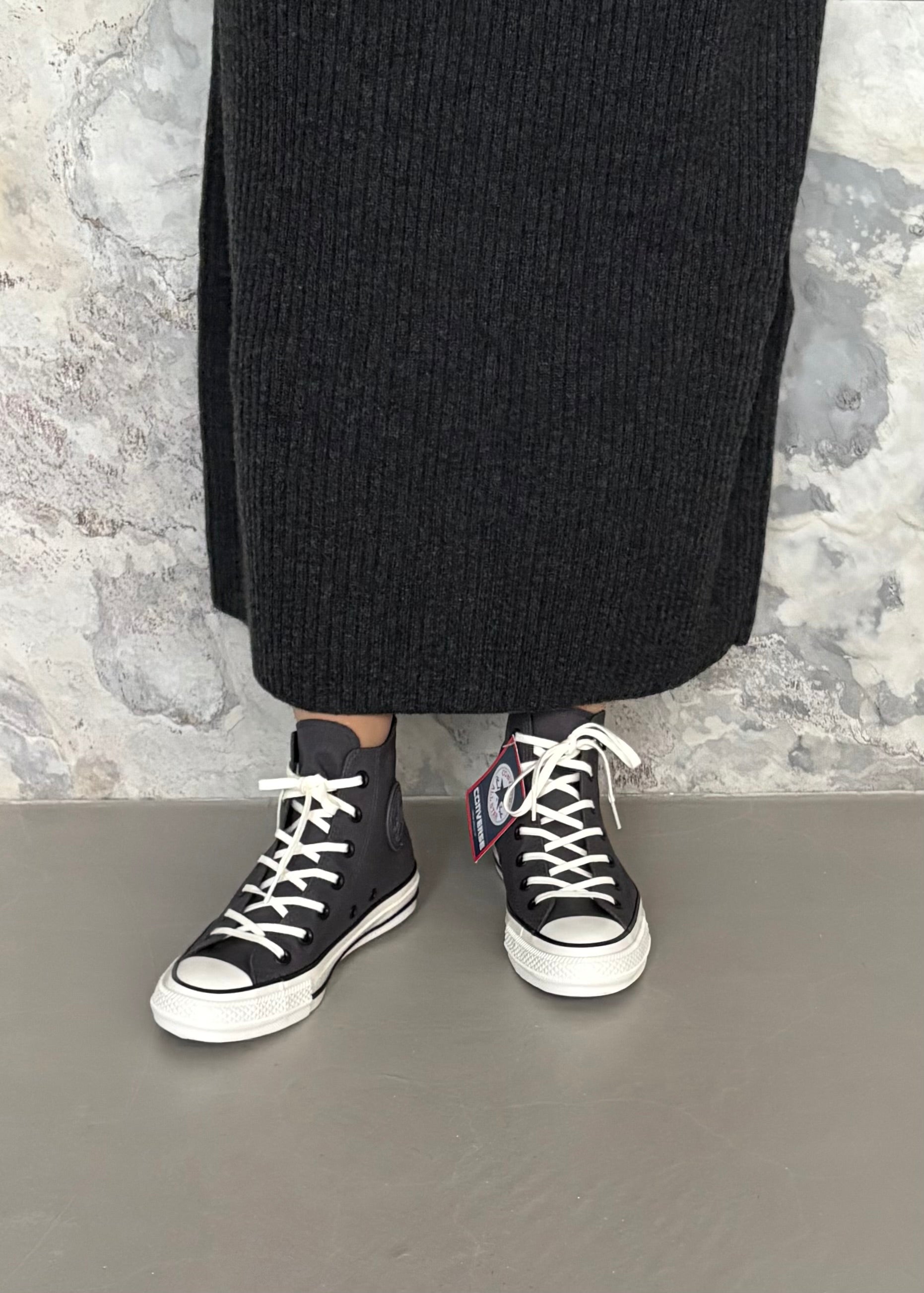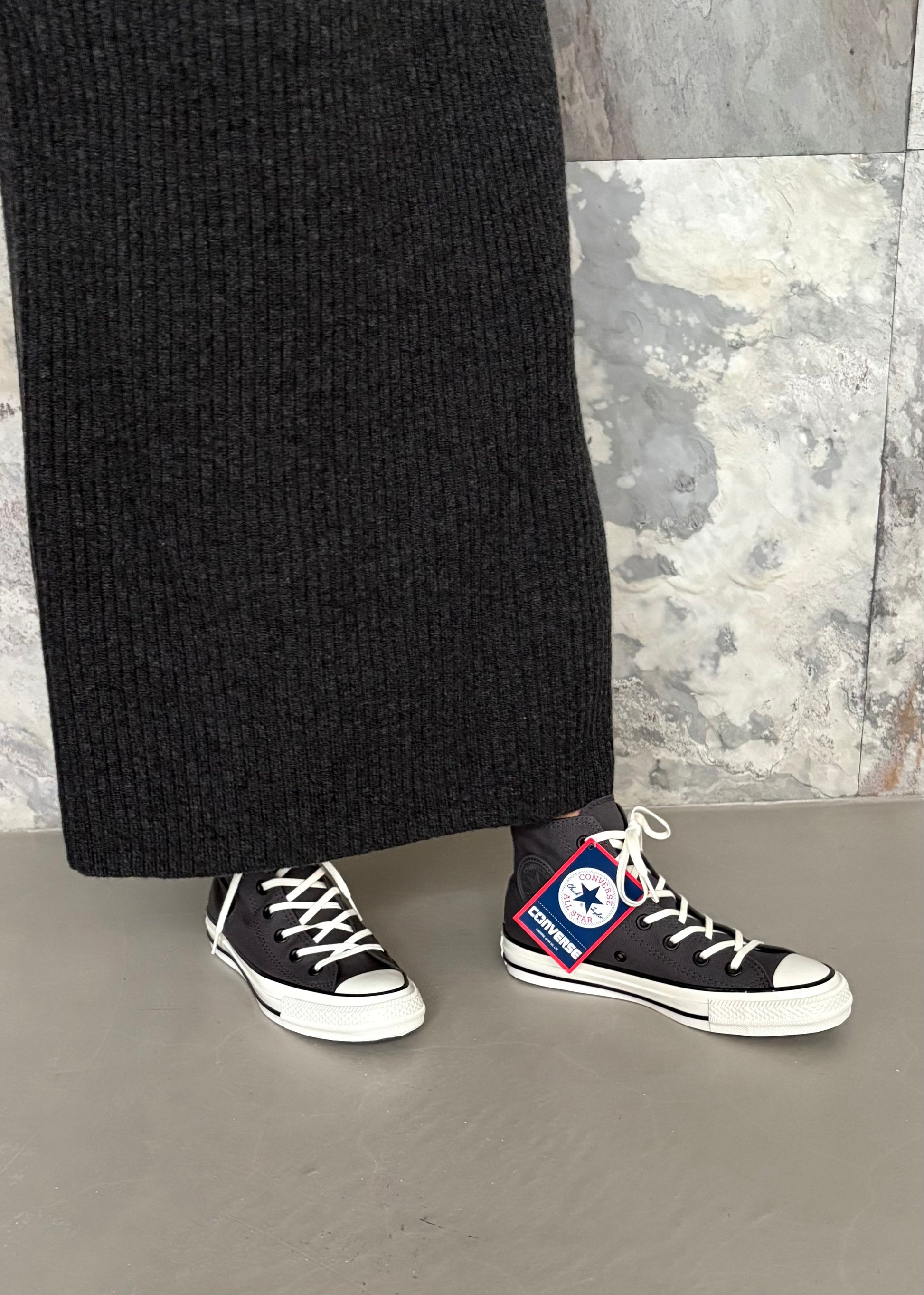 2015年よりブランドスタートしたSINMEが10周年を迎え企画した一つがSINMEとコンバースのコラボレーション。コーディネートを選ばないダークグレーのキャンバス素材。ハイカットとローカットの2種類になります。色はブラックほど重たくなりすぎないダークグレー。シューレースはホワイトとブラックの2種類が入っていますので気分によって変えていただけます。クラシカルなキャンバス素材はデニムやウール素材など様々なスタイリングに合わせやすい一足です。
