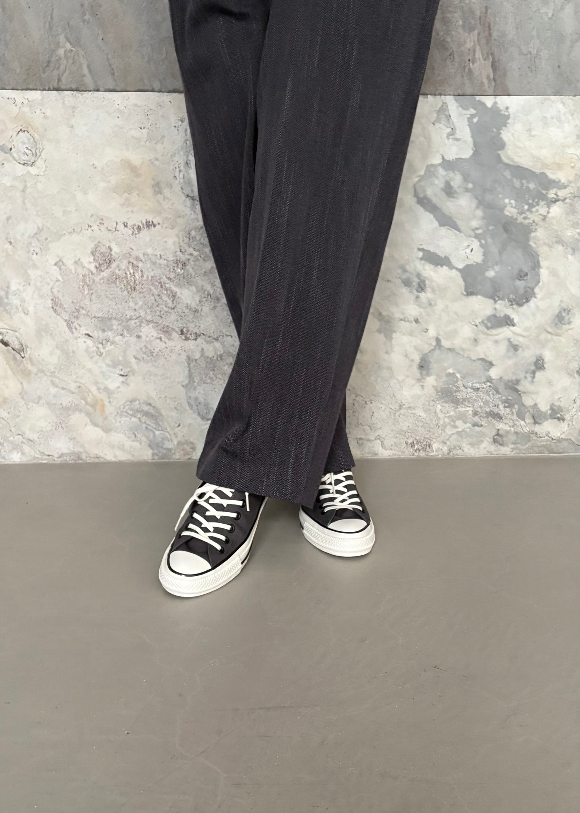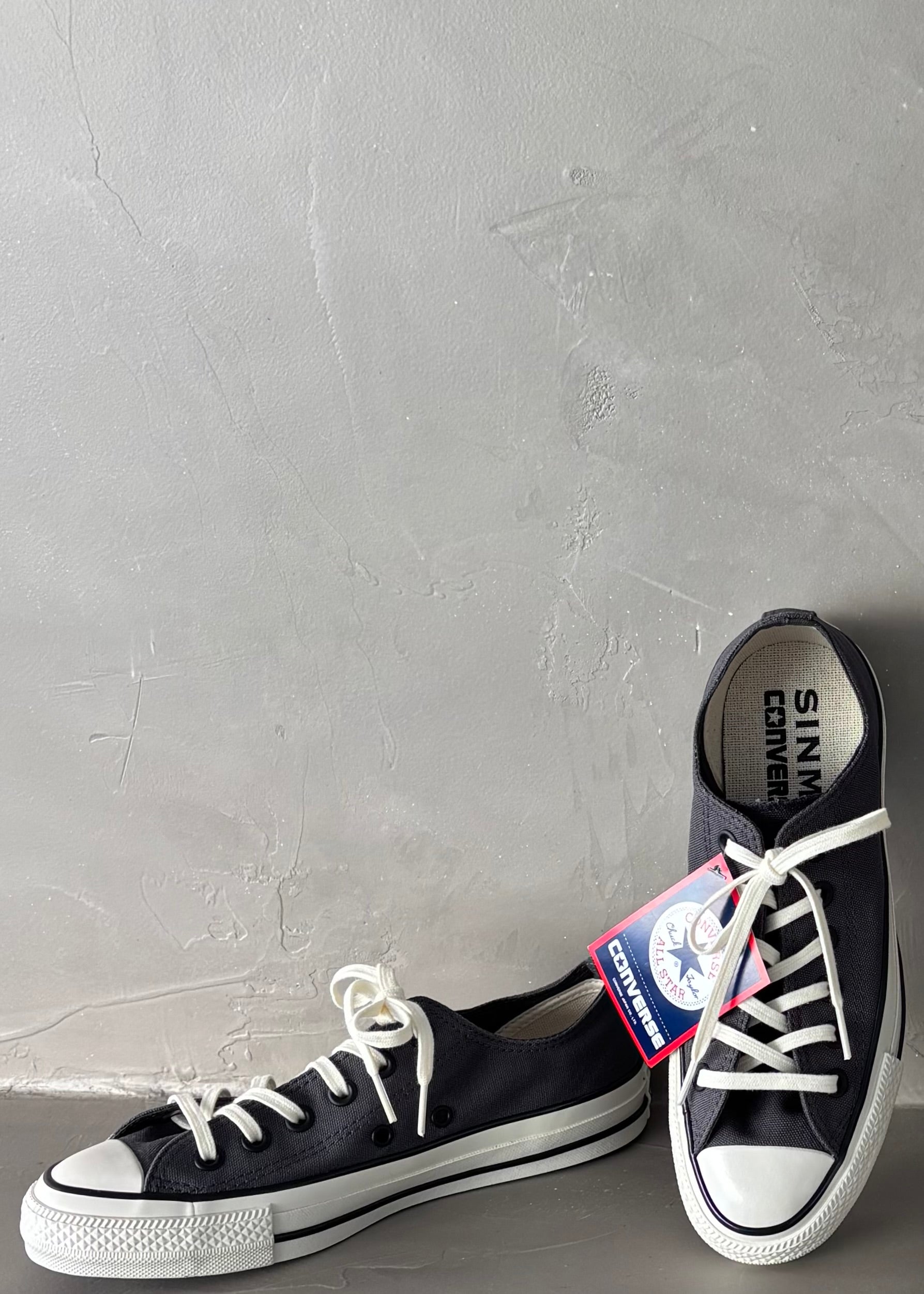 2015年よりブランドスタートしたSINMEが10周年を迎え企画した一つがSINMEとコンバースのコラボレーション。コーディネートを選ばないダークグレーのキャンバス素材。ハイカットとローカットの2種類になります。色はブラックほど重たくなりすぎないダークグレー。シューレースはホワイトとブラックの2種類が入っていますので気分によって変えていただけます。クラシカルなキャンバス素材はデニムやウール素材など様々なスタイリングに合わせやすい一足です。