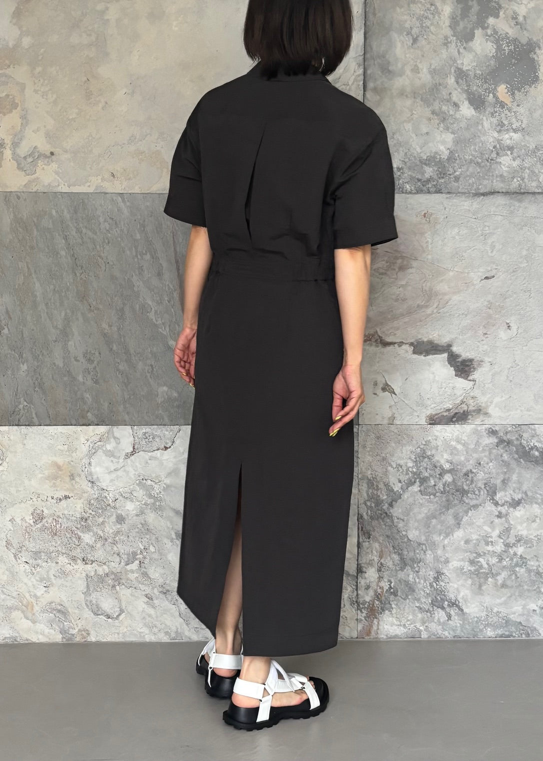 ドロップショルダー、ワイドなアームホール、背中のプリーツ、後ろスリットで動きやすいデザインです。