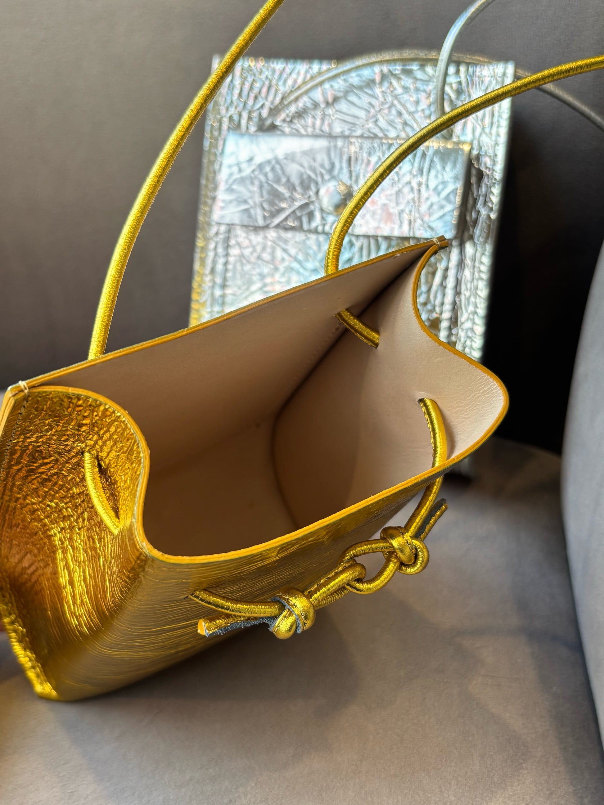一枚革から作られた立体的な箱型フォルムが印象的なレザーミニショルダーバッグ。